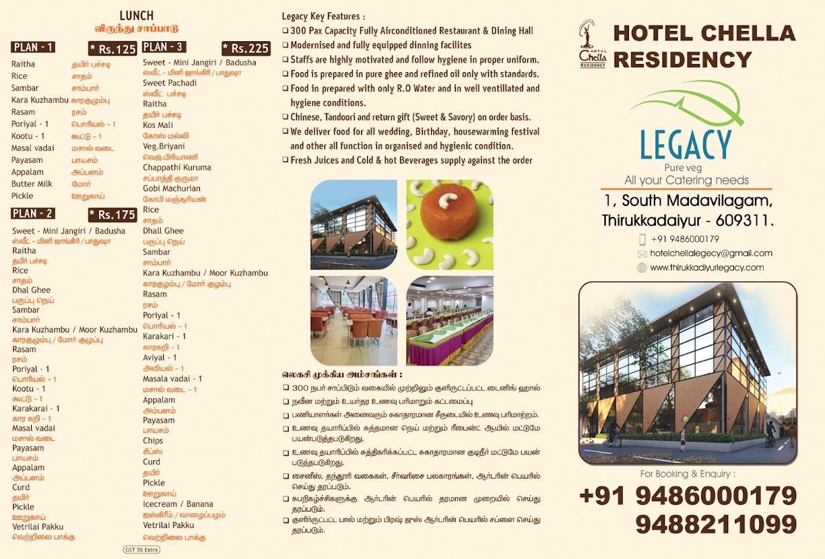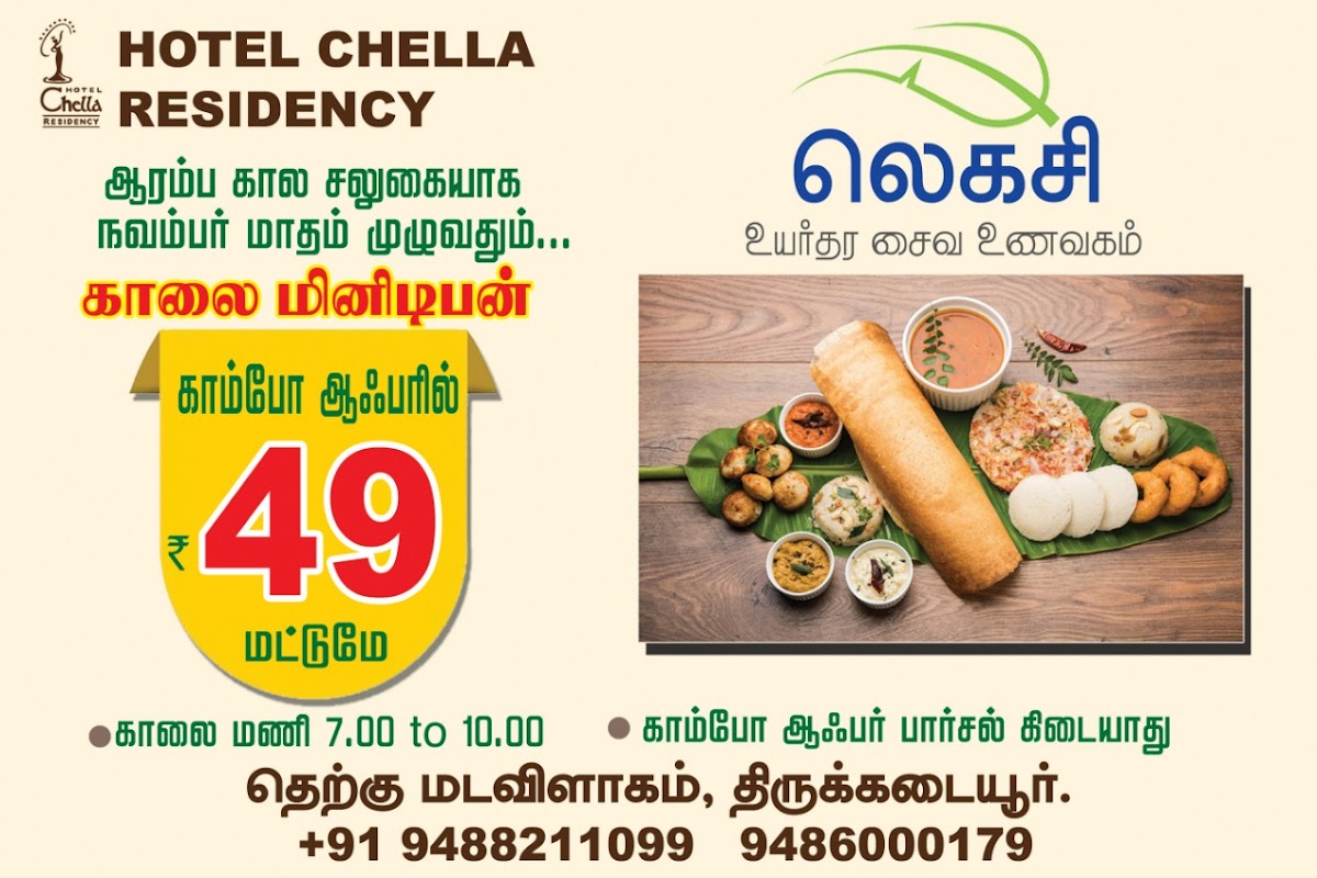 Welcome to Chella Legacy, a culinary gem nestled in South Madavilagam, Thirukadaiyur. This charming restaurant captures the essence of traditional South Indian cuisine with its diverse menu and warm ambiance.